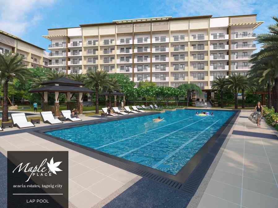 Maple Place nestles within a 1.22 hectare property, strategically located in a vibrant community of Acacia Estates, Taguig. It consists of 3 medium-rise buildings inspired by a Botique Hotel architecture with centrally located amenity areas.